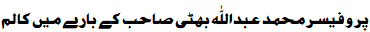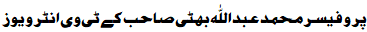 Professor Abdullah Bhati Sb Interview with Nadeem Malik